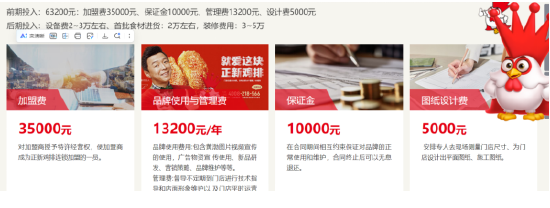 正新鸡排官网加盟页面显示,加盟正新鸡排前期需要投入6。32万元。此中,加盟费3。5万元,金1万元,办理费和设想费别离为1。32万元和5000元。此外,后期的设备费用2-3万元,首批食材进货2万元摆布,拆修3-5万元。分析来看,加盟一家正新鸡排,正在不考虑房租水电和人工的环境下,运营起来至多要破费13。32万元。